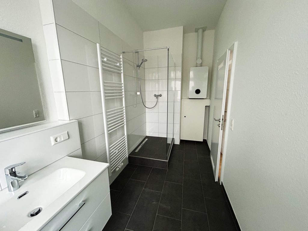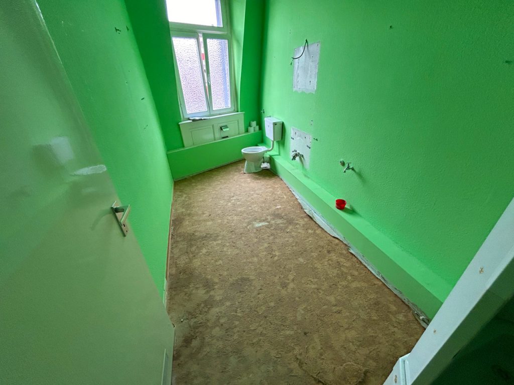 - Vollständige Entkernung und Neuaufbau des Badezimmers