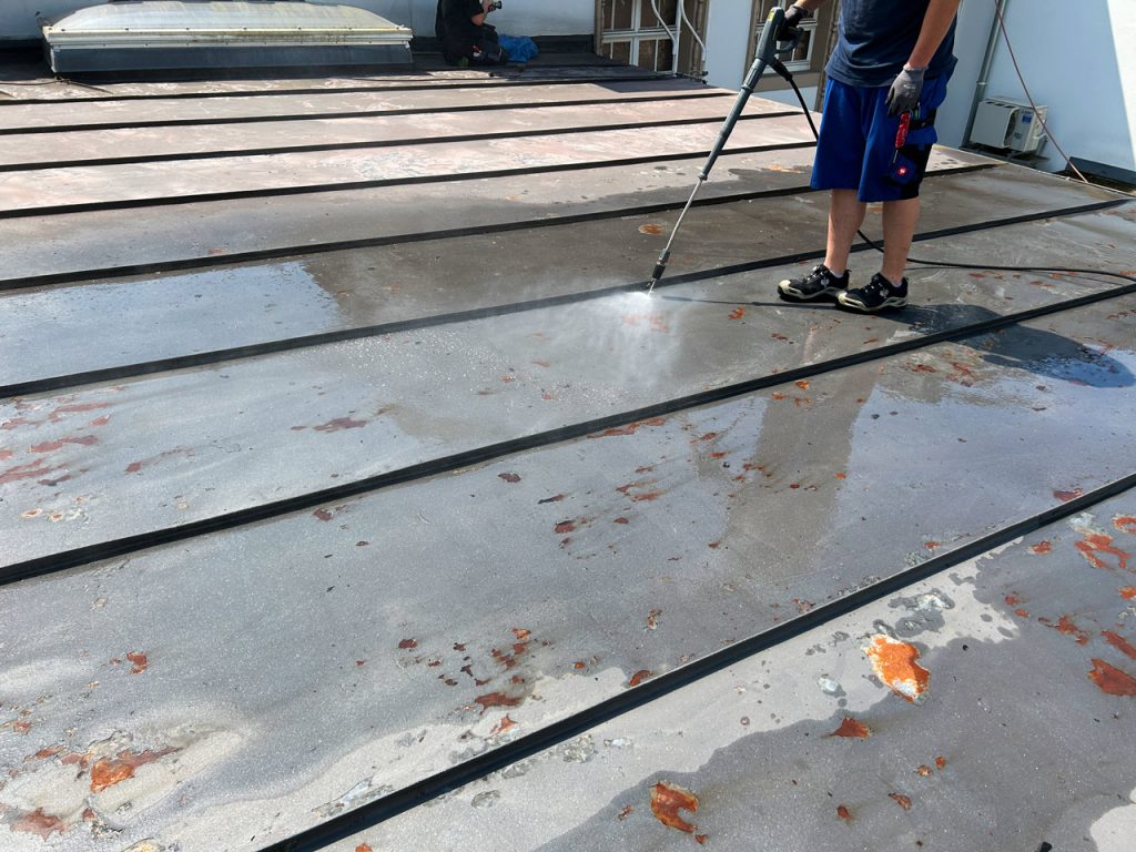 - Reinigung und Entrostung der kompletten Dachfläche
