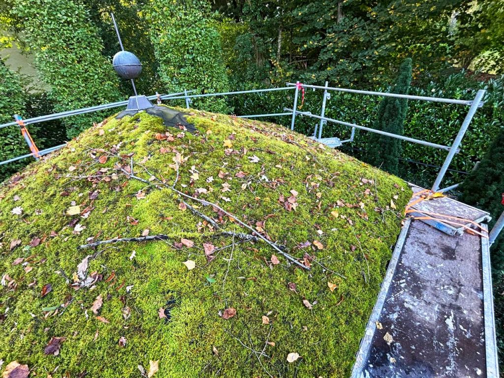 Ergebnis: Das Blechdach erstrahlt wieder in gleichmäßigem, gepflegtem Zustand – technisch modernisiert, optisch im historischen Stil erhalten und bereit für viele weitere Jahrzehnte.