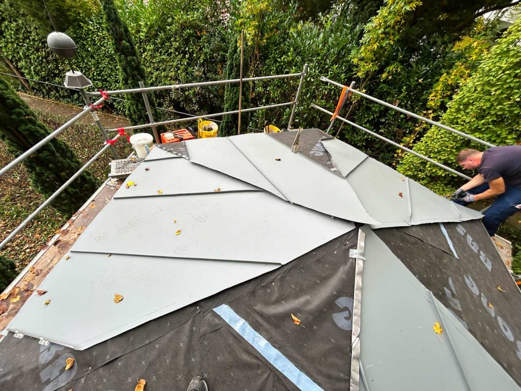 - Maßgefertigte Eindeckung mit Stehfalzblechen